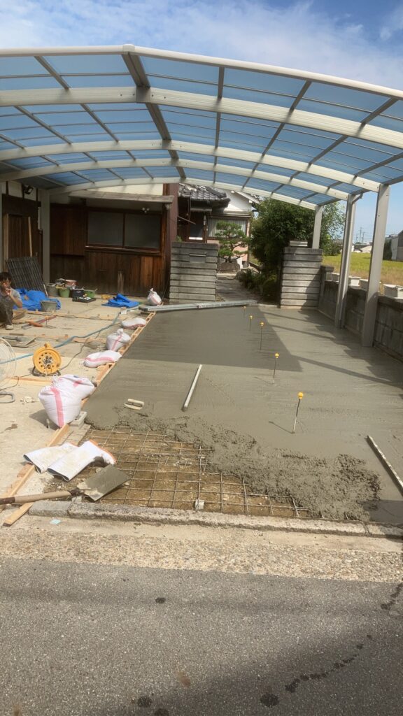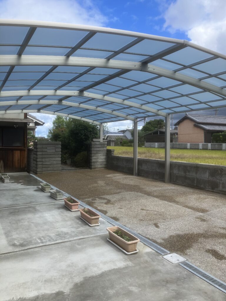 既存のガレージを拡張し、新たなカーポートを設置しました