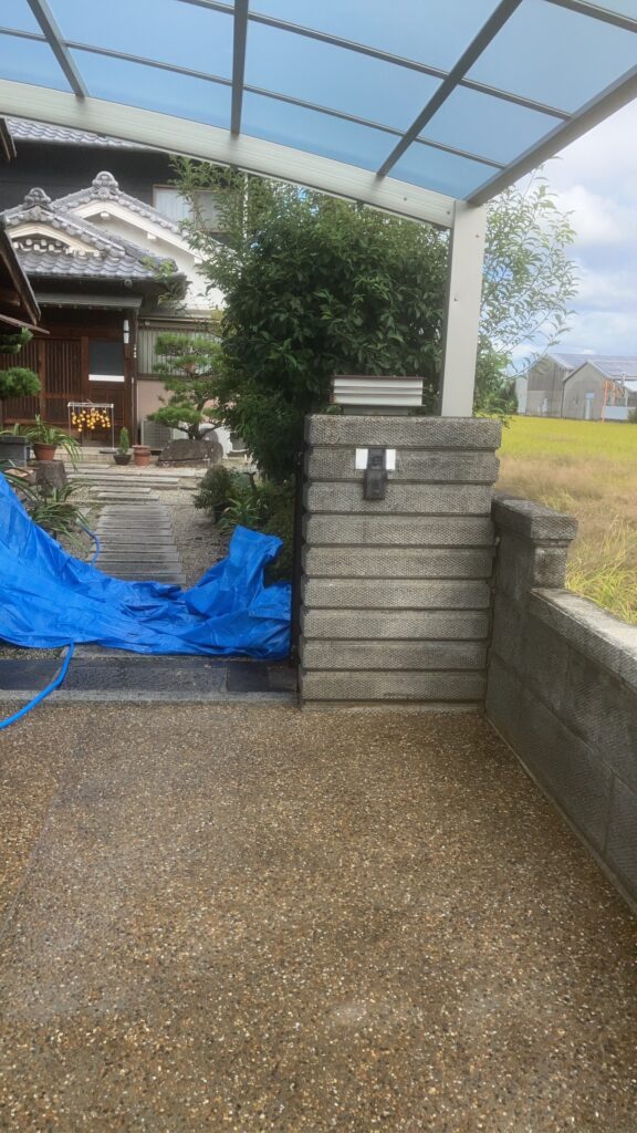 拡張したガレージの半面(正面玄関部分)は三部砂利洗い出しで仕上げさせていただきました。